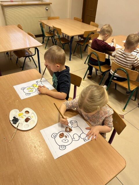 - zajęcia plastyczne – dzieci tworzyły portrety swoich misiów.