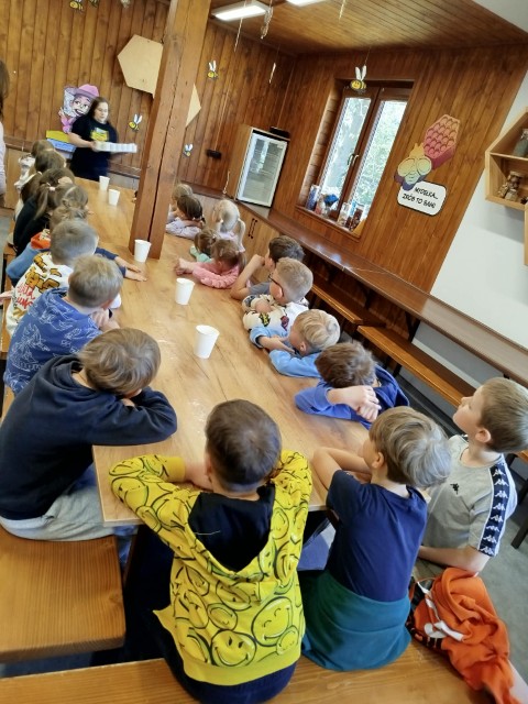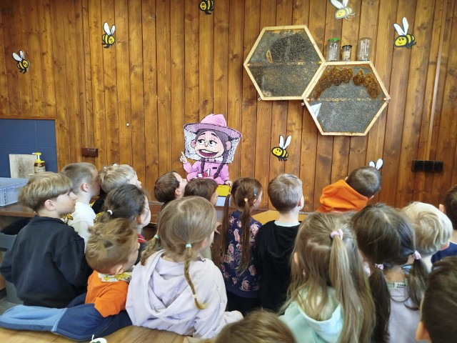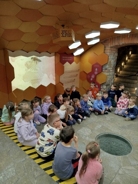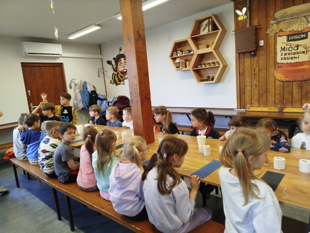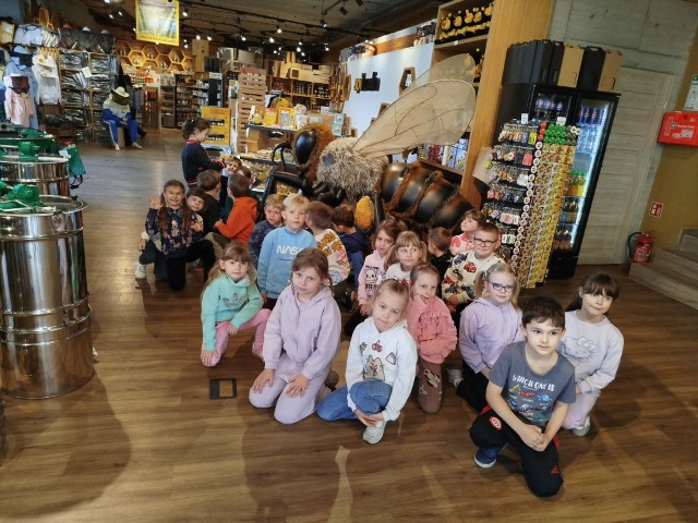 24 kwietnia grupa VI wybrała się na wycieczkę do Apilandii- interaktywnego centrum pszczelarstwa. Na początku dzieci zwiedziły muzeum, gdzie poznaly fascynujący świat pszczół- dowiedzieli się, jak wygląda życie w ulu oraz kto w nim mieszka. Następnie dzieci uczestniczyły w warsztatach, podczas których samodzielnie wykonały świece z wosku. Była to nie tylko świetna zabawa, ale także okazja do rozwijania zdolności manualnych. Na zakończenie wszyscy mieli możliwość spróbowania naturalnego miodu oraz pyłku pszczelego. Wycieczka była pełna radości, nowych doświadczeń i słodkich smaków.