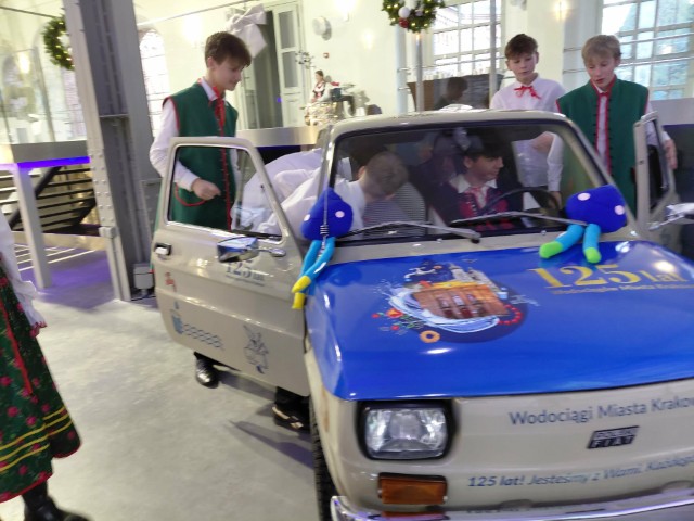 Następnie Uczniowie wraz z Opiekunami pojechali z kolędą do Zakładu Uzdatniania Wody Bielany – Wodociągi Miasta Krakowa. Tam kolędowali dla wielu krakowskich firm między innymi KHK a także dla zaproszonych gości, w tym dla Pana Prezydenta Miasta Krakowa.