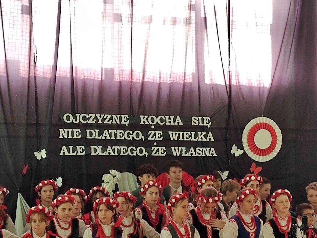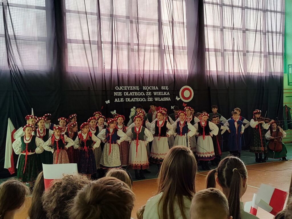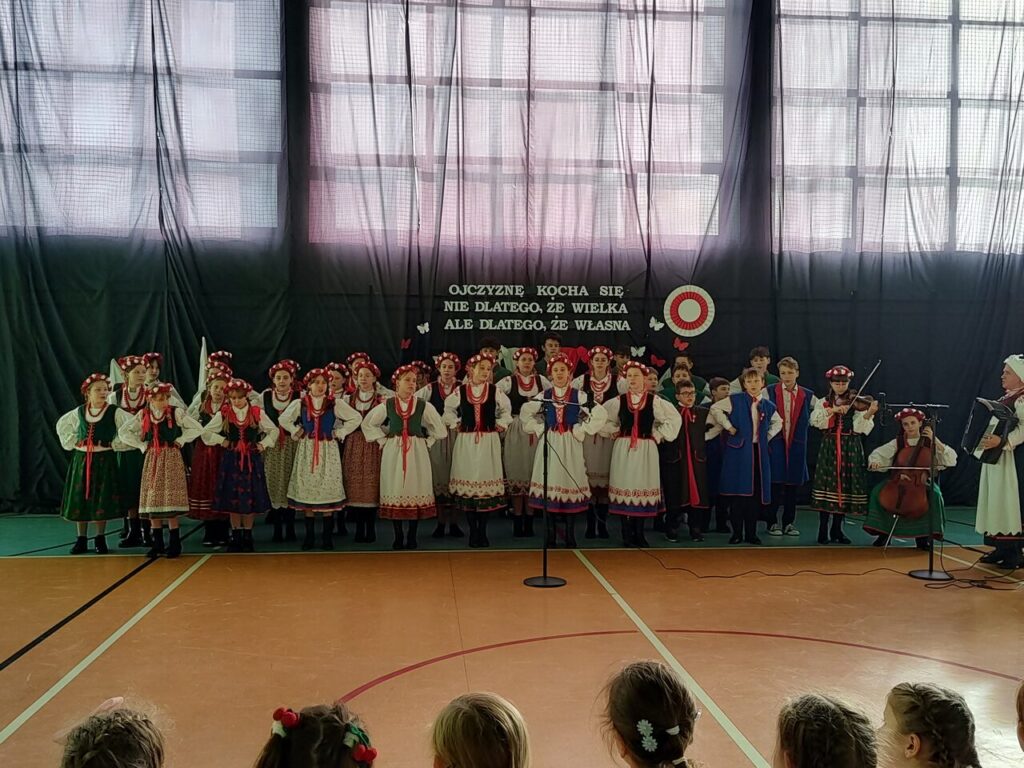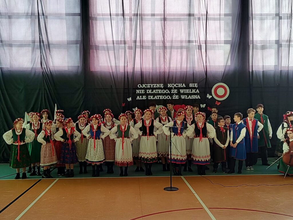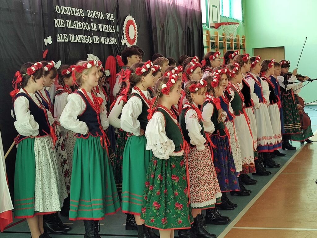 Centralnym punktem uroczystości było zaprezentowanie się szkolnego zespołu folklorystycznego TAKOGODKA, który w pięknych, regionalnych strojach zaśpiewał pieśni patriotyczne, przypominając o bogactwie polskiej kultury i tradycji. Ich występ spotkał się z gorącym przyjęciem publiczności.