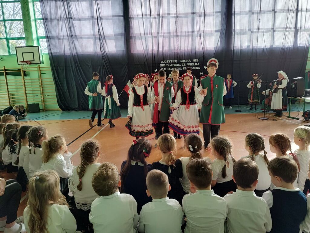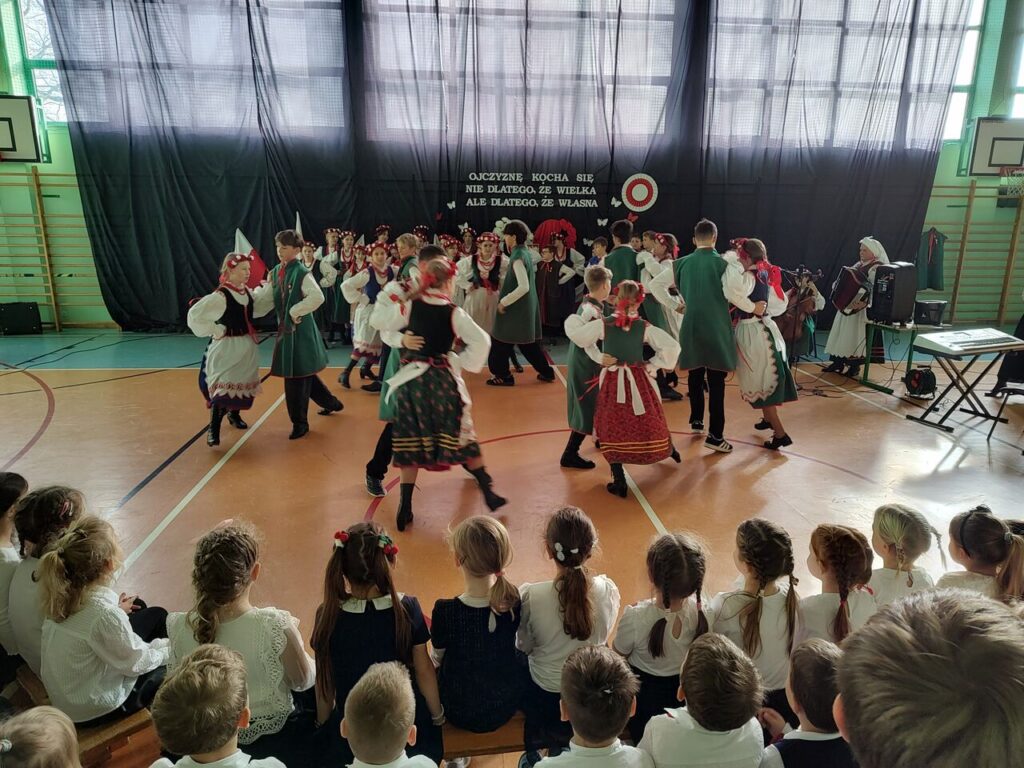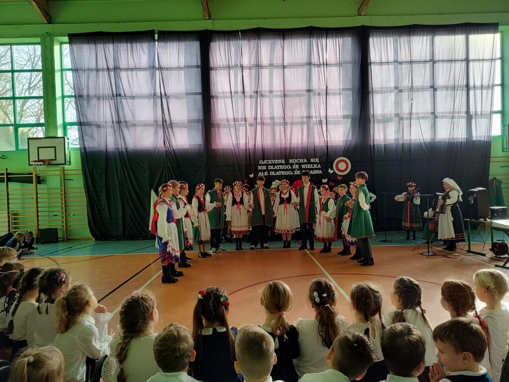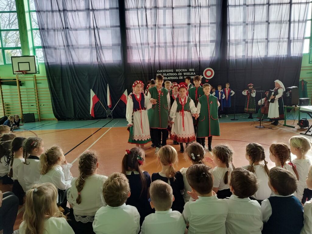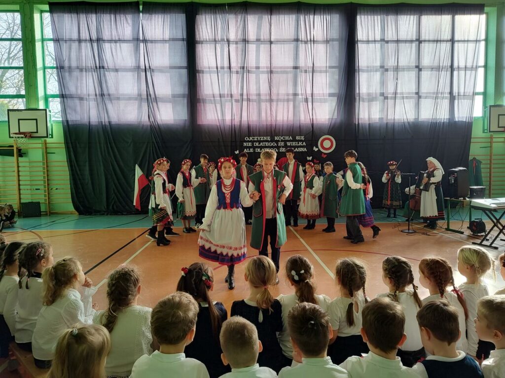 Centralnym punktem uroczystości było zaprezentowanie się szkolnego zespołu folklorystycznego TAKOGODKA, który w pięknych, regionalnych strojach zaśpiewał pieśni patriotyczne, przypominając o bogactwie polskiej kultury i tradycji. Ich występ spotkał się z gorącym przyjęciem publiczności.